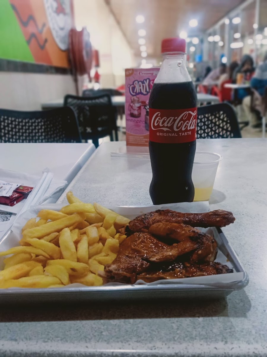 Very tasty grilled chicken and chips, reasonably priced. Amazing quality for a fast food chain. If you get a craving for take away don't miss out. The service is friendly and efficient. They offer free delivery in the neighbourhood even for items from the adjacent shop, wine, beer, soft drinks etc.
